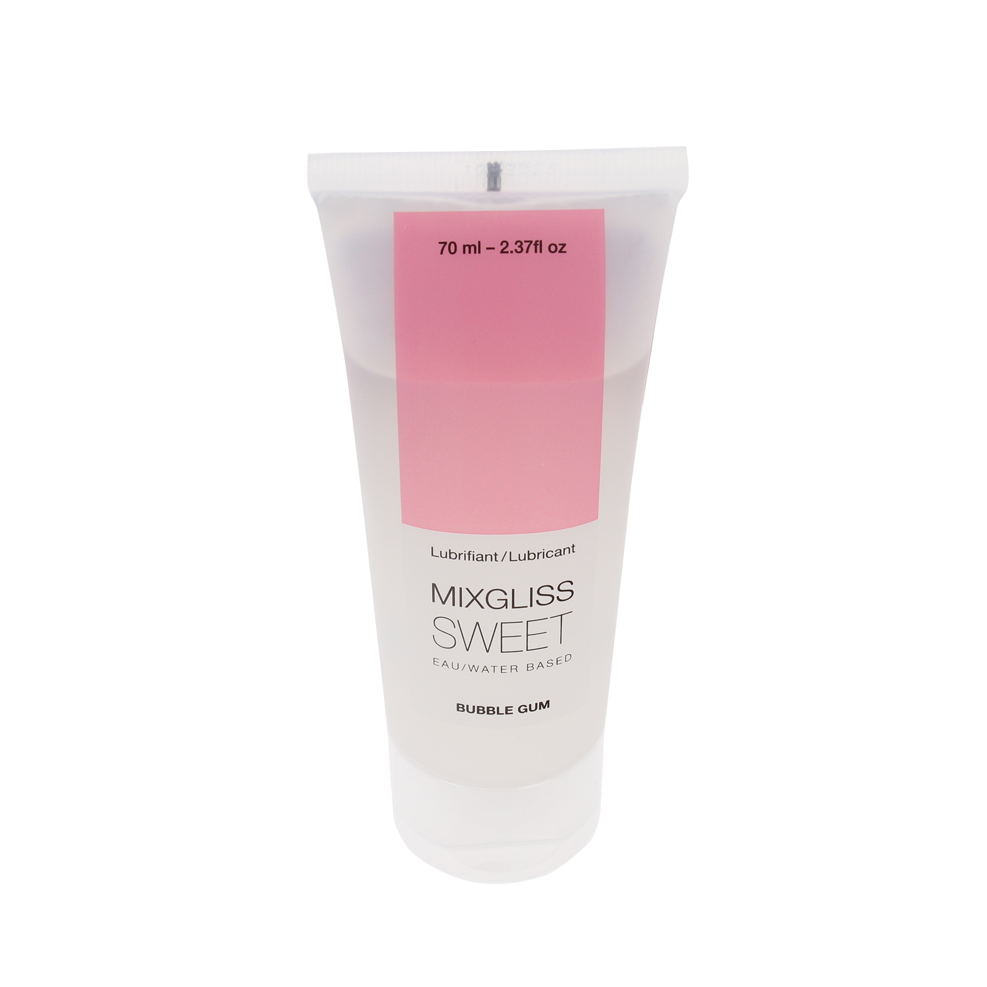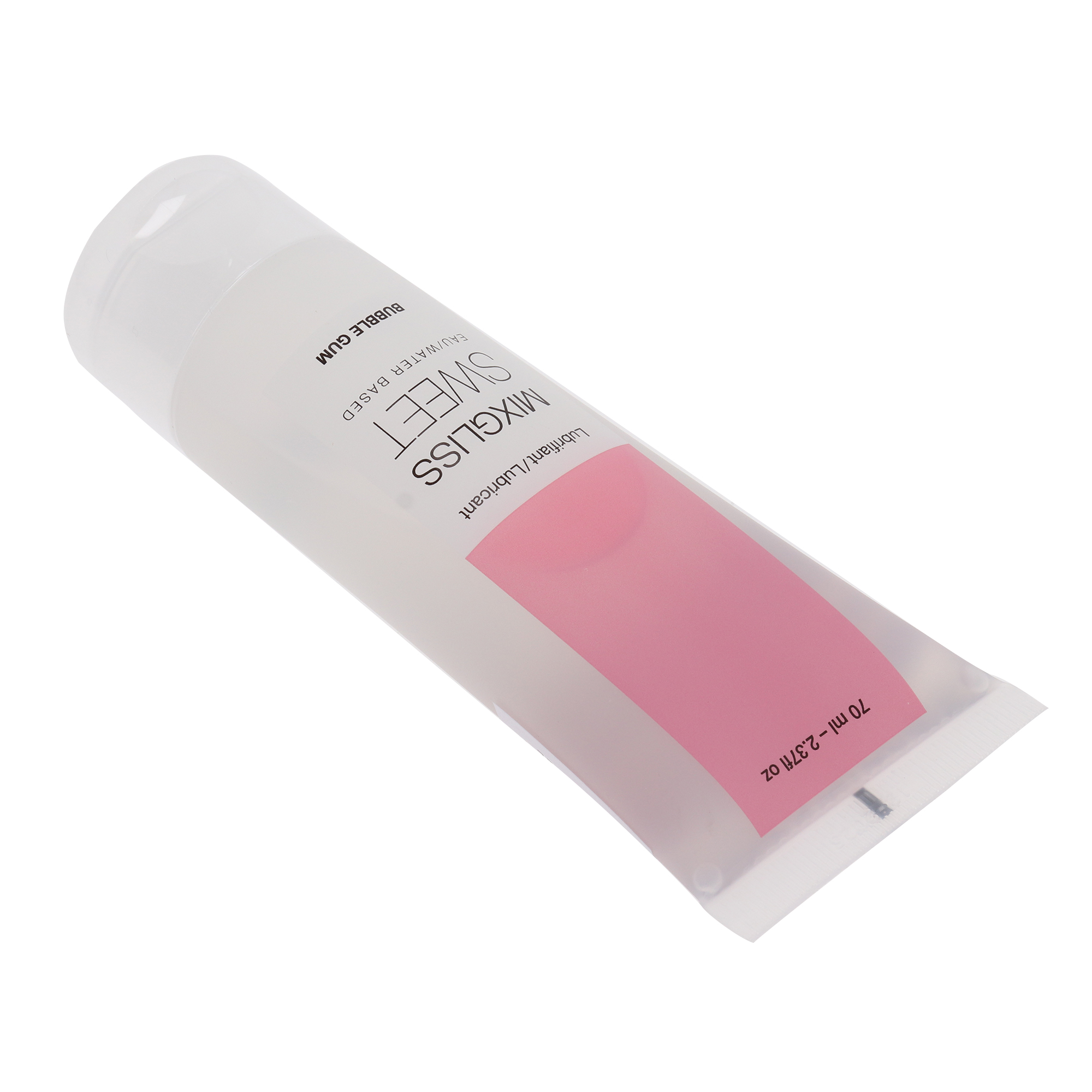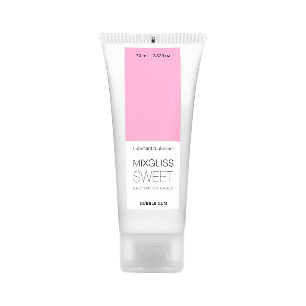 Mixgliss Sweet Bubble Gum е безцветен гел на водна основа. Подходящ е за вегани, а 92 процента от съставките му са с естествен произход. Има аромат на сладка дъвка. Формулата му е лека, почти течна, но примамливо хлъзгава. Създаден е, за да предизвика повече желание за интимност и да съхрани хармонията в деликатните части на тялото.