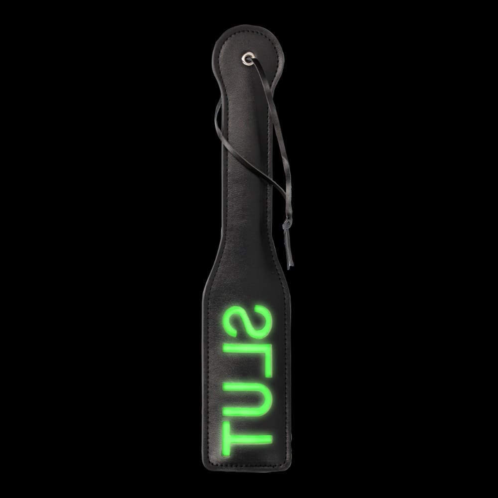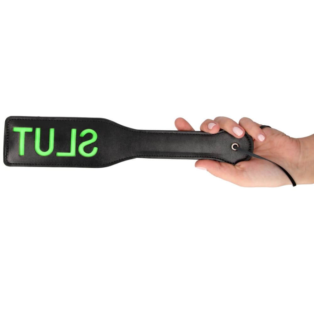 Палката от серията Glow in the Dark е готова да освети буквално и преносно пътя Ви към властта! От едната ѝ страна е поставен надпис SLUT върху зелена лента, която след като се активира със слънчева светлина- фосфоресцира и прави игрите на тъмно много по-забавни. Буквите са ситуирани така, че да се отбележат правилно върху кожата след използване. Никога не изпускайте от око подчинения си и бъдете готови да реагирате на всяко движение!