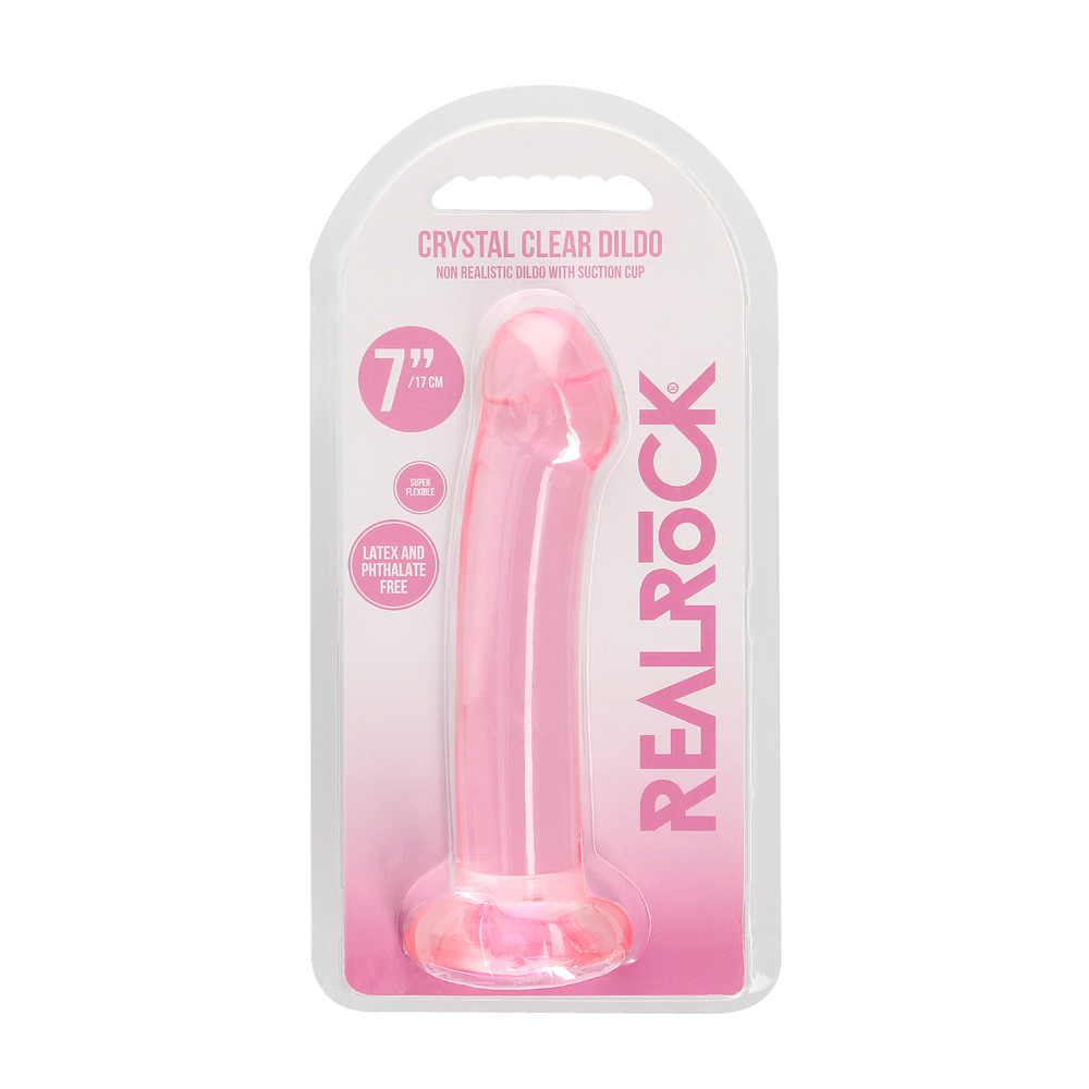 Realrock Crystal Clear Дилдо, гладко, розово, 7 инча