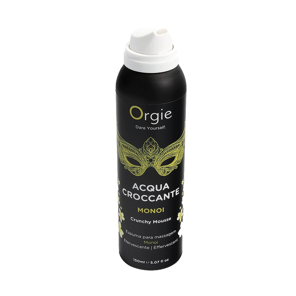 Изненадайте себе си и половинката си с необичаен вид масаж. В момента на досег с кожата, пяната започва да ‚пука‘ леко, но приятно. Усещането се засилва многократно при натиск като провокира ярък ефервесцентен ефект (бурно отделяне на газ). Ако някога сте опитвали пукащи бонбони като деца и сте се забавлявали на воля, то ще останете повече от доволни от резултата на Orgie.