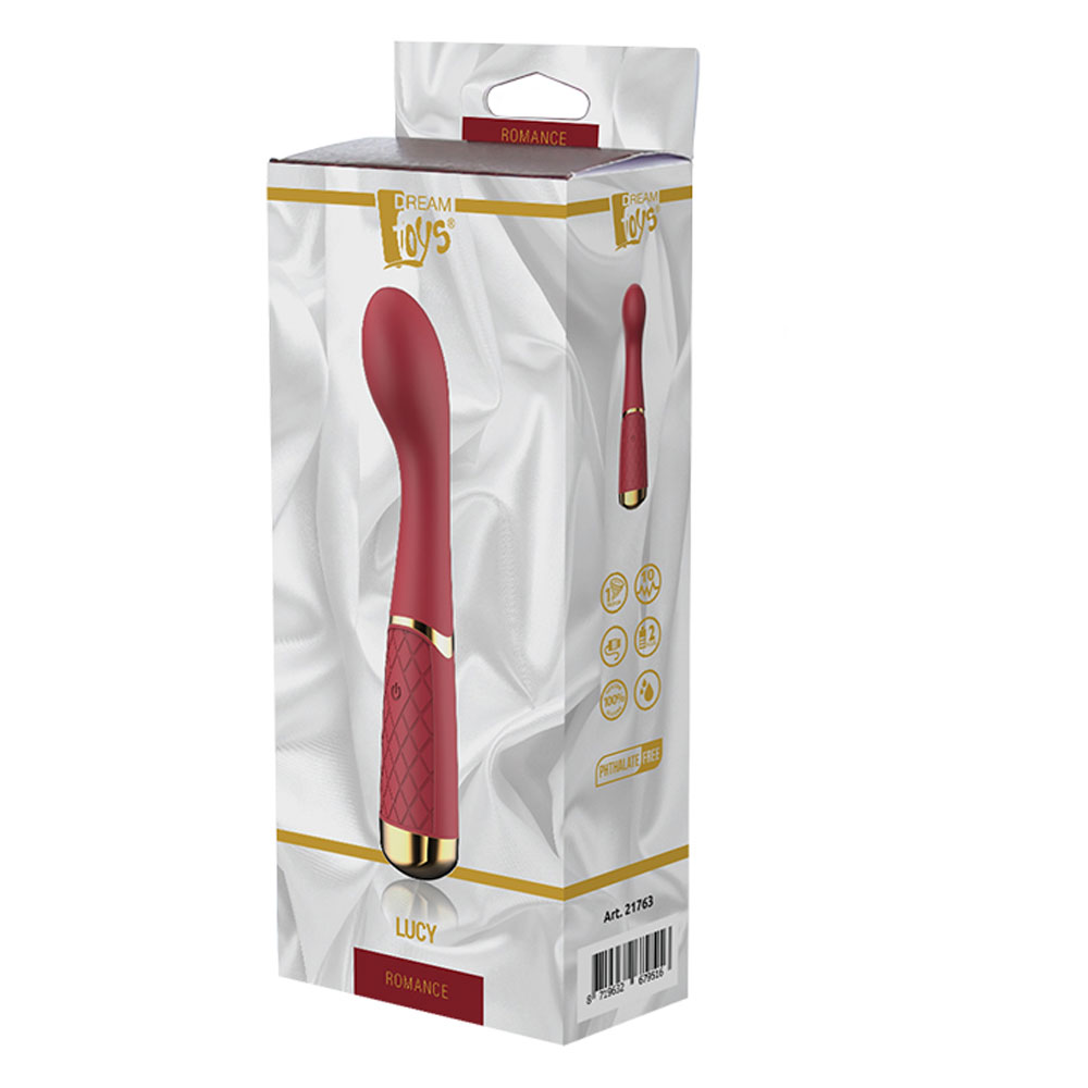 ROMANCE Lucy Вибратор е създаден с акцент, насочен към изследване и правилно стимулиране на Г-точката. Стволът му притежава гладка кадифена повърхност с нетипично удебелена и извита главичка. Артикулът е специално изработен за дами, които искат да изпитат върховна наслада и да ѝ се насладят без задръжки.