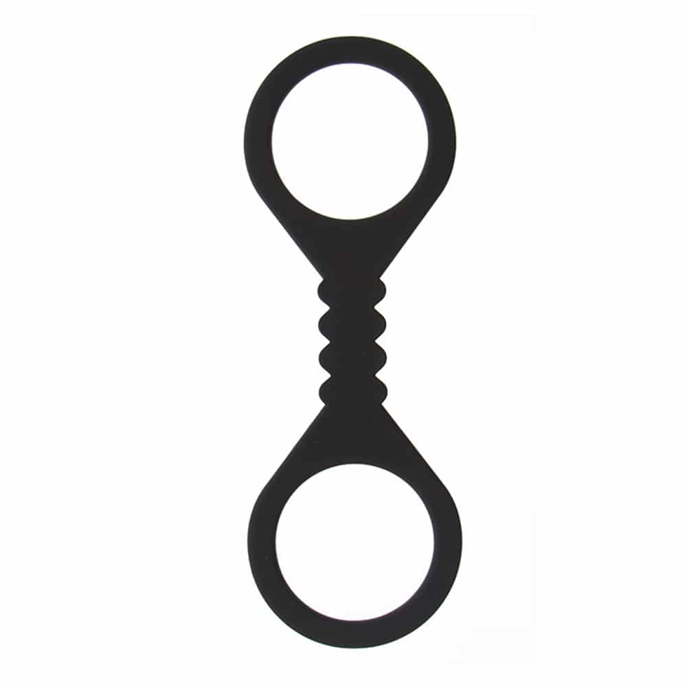 Той е изработен от напълно безопасен медицински силикон, който се поддържа и почиства лесно. Не съдържа фталати, не задържа миризми и е устойчив във времето. Диаметърът на двете страни няма как да се регулира, но с лекота успява да се напасне към глезените на повечето хора. Шест сантиметрова лента свързва двата крака, като не позволява голяма амплитуда на движение.