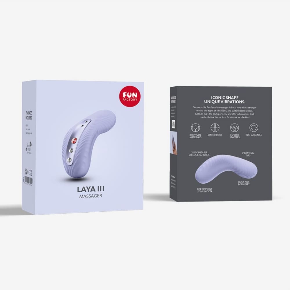 Laya 3 Клиторен стимулатор е подобрена версия на предшественика си Laya 2. Той представлява луксозен мини вибратор за външна стимулация. Моторът му е снабден с лек потупващ ефект под самите вибрационни вълни (усеща се най-ярко при 1вите 3 функции), като този факт прави играта по-интензивна и запомняща се. Допълнителният фин релеф от едната страна добавя нови и по-богати усещания.