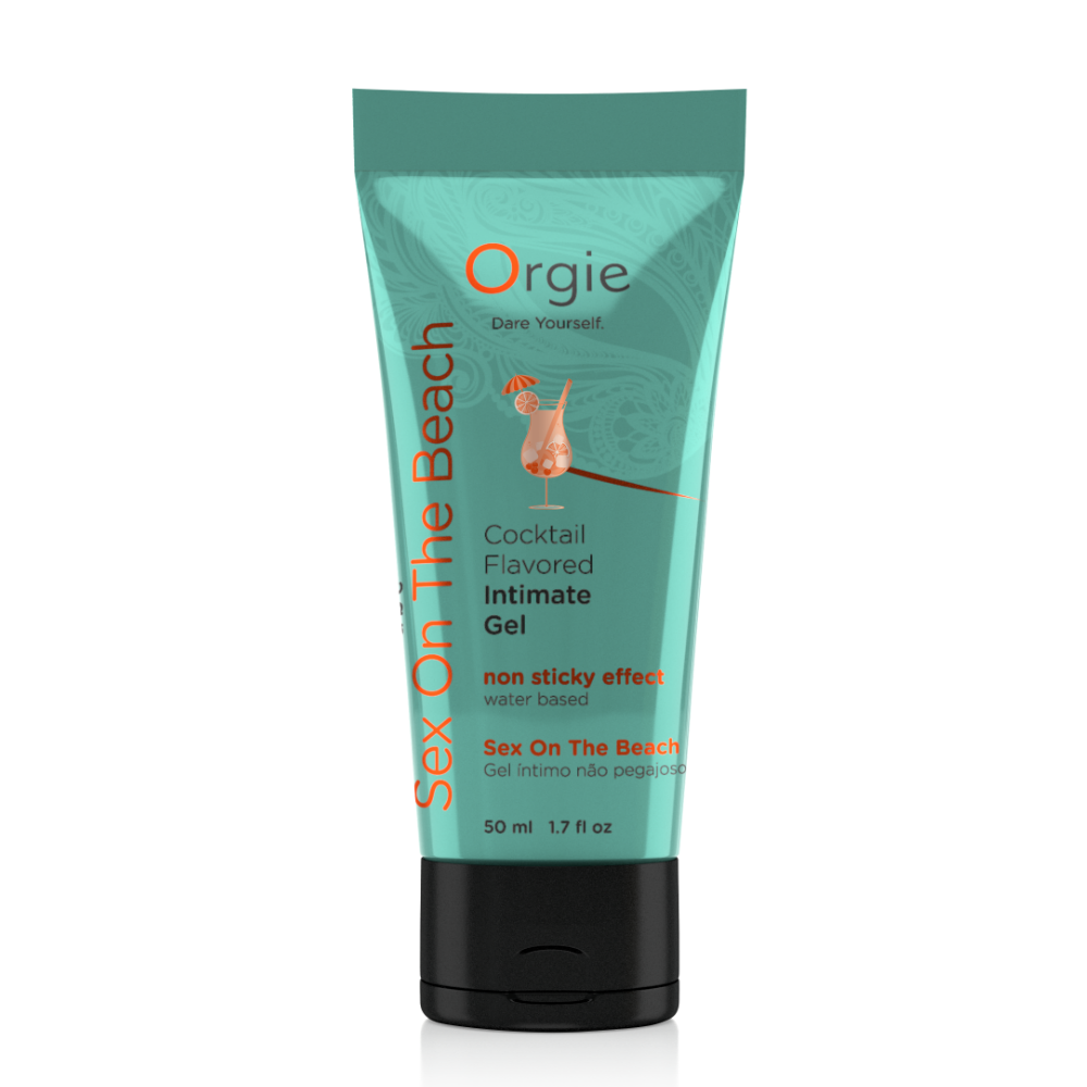 Коктейлът Sex on the beach се ражда от изобретателността на барман във Флорида, който си дава сметка за двете основни причини за туризма в неговия щат- сексът и плажът. Именно сладострастната комбинация- на праскова, портокал и боровинки, е първоизточник на идеята на Orgie- ароматен лубрикант, който събужда сетивата и засилва желанието. Формулата му е на водна основа, лека и не лепне. Съдържанието на глицерин го прави леко сладък. Подходящ е за орален секс. Има завладяващи вкус и аромат. Достатъчно дълготраен е и можете да му се насладите докато мастурбирате или сте с партньор. Играчки от всякакъв тип и презервативи са строго разрешени!