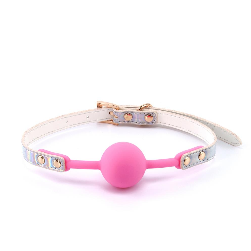 Розовата ограничителна топка и лентите, намиращи се от двете ѝ страни, са изработени от силикон. Той е траен във времето материал. Хипоалергенен е, не съдържа фталати и латекс. Не задържа миризми и се почиства лесно. Удобство в случая е, че е по-мек в сравнение с пластмасовите модели и при захапка не се усеща дискомфорт. Силиконовите странични лентички, се разтягат и внасят допълнителни сантиметри, ако е нужно, при нагласяне на играчката. Кръгът няма отвори- това затруднява максимално всяко вдишване/ издишване, както и произвеждането на звуци. Вие държите юздите на контрола! Всичко зависи от Вас! Накажете непослушния си партньор, докато се наслаждавате!