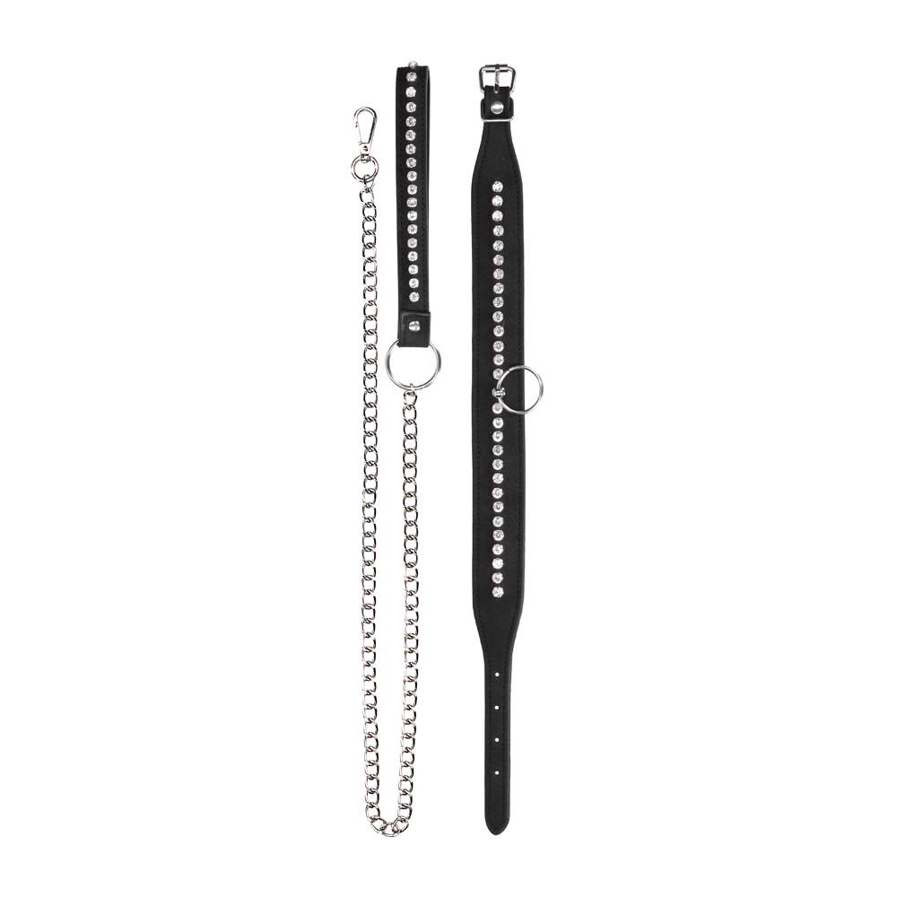 Бъдете щастливо ограничени с елегантния и стилен нашийник с повод, обсипан с диаманти. Блестящите камъчета са любимци на всяка дама и без съмнение са гарант за превръщането ѝ в център на внимание и обожание.